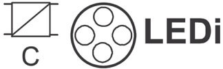На электрической схеме, светорегуляторе, трансформаторе или самой лампе данный тип нагрузки может маркироваться HV-LED (C) или LEDi (C), в редких случаях может обозначаться TE (trailing edge), а так же одной из следующих пиктограмм: