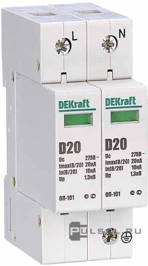 Ограничитель перенапряжений 2P 20кА D 275В ОП-101 ОП-101, 2 полюса, Класс 1, 10 кА, 20 кА