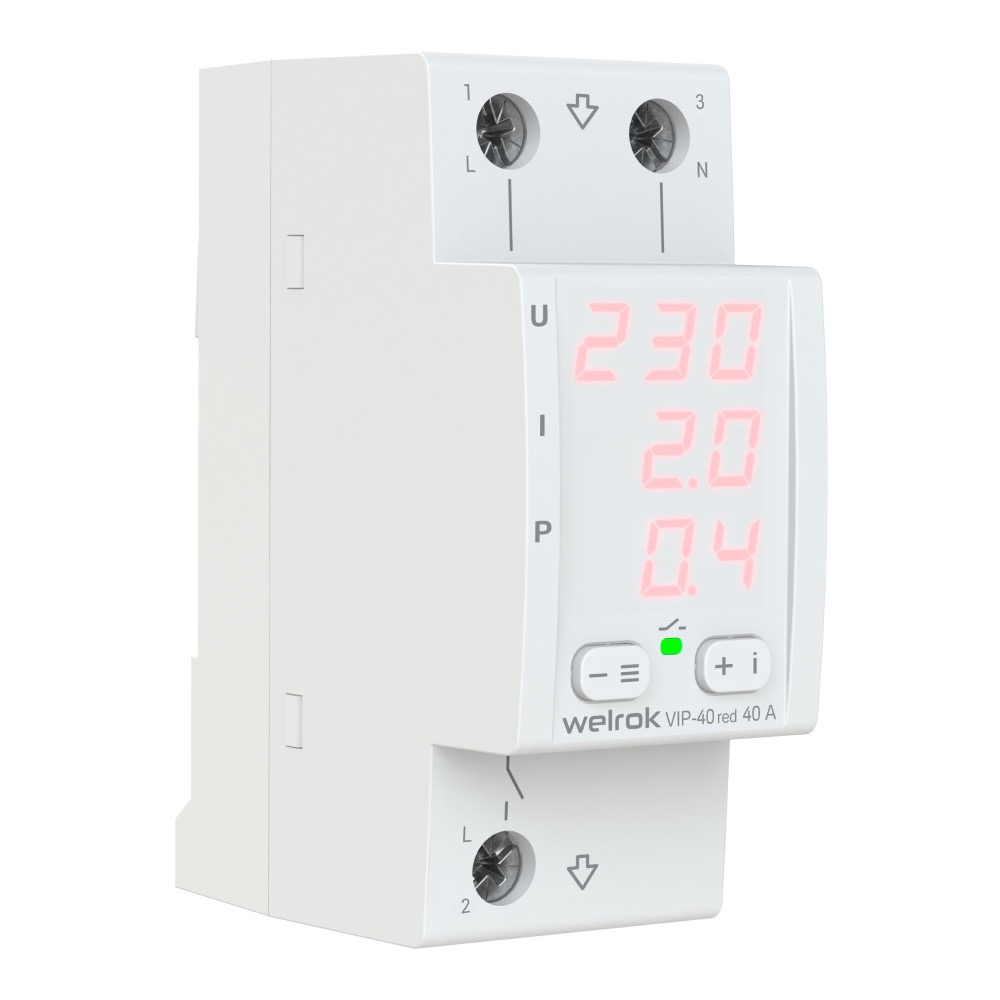 • Реле напряжения с контролем тока 1P+N KARAT, 1НО, 40А, 220В AC