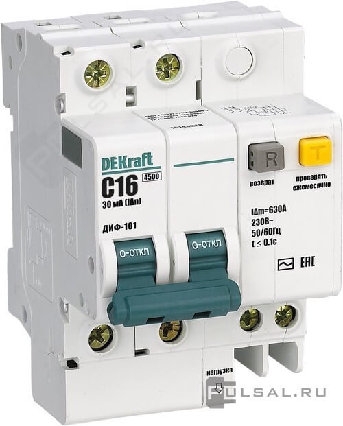 • Автомат дифференциального тока ДИФ-103 ДИФ-103, 3+N полюса, 63А, D, 4, 5 кА, тип - AC,
