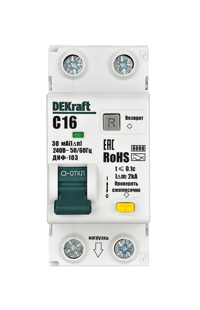 Автомат дифференциального тока ДИФ-103 ДИФ-103, 1+N полюс, 20А, C, 6 кА, тип - AC,