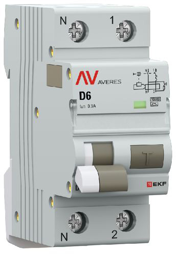 Автоматический выключатель дифференциального тока DVA-10 AVERES, 1+N полюс, 6А, D, 10 кА, тип - A,