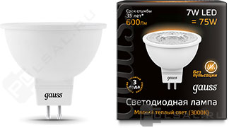 Лампа светодиодная Black, цоколь - GU5.3, мощность - 7Вт, световой поток - 600Лм, цветовая температура - 2700Кцветовая температура - 3000К, не диммируется, 101505107, Gauss