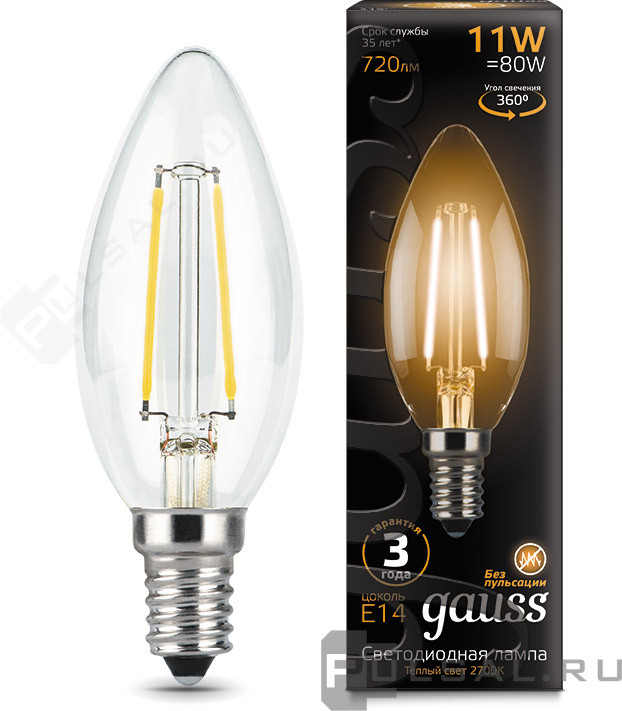 Black, цоколь - E14, мощность - 11Вт, световой поток - 720Лм, цветовая температура - 2700К, не диммируется, 104801111, Gauss