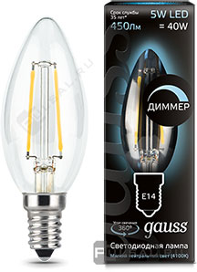 Black, цоколь - E14, мощность - 5Вт, световой поток - 450Лм, цветовая температура - 4100К, не диммируемая, 103801205T, Gauss