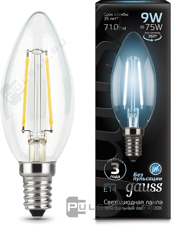 Лампа прозрачная (3 лампы в упаковке) филаментная Black, цоколь - E14, мощность - 5Вт, световой поток - 450Лм, цветовая температура - 4100К, не диммируемая, 103801205T, Gauss