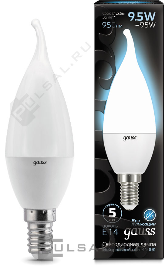 Black, цоколь - E14, мощность - 5Вт, световой поток - 450Лм, цветовая температура - 4100К, не диммируемая, 103801205T, Gauss