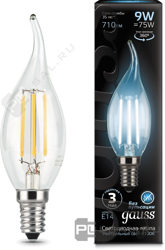 Лампа прозрачная (3 лампы в упаковке) филаментная Black, цоколь - E14, мощность - 5Вт, световой поток - 450Лм, цветовая температура - 4100К, не диммируемая, 103801205T, Gauss