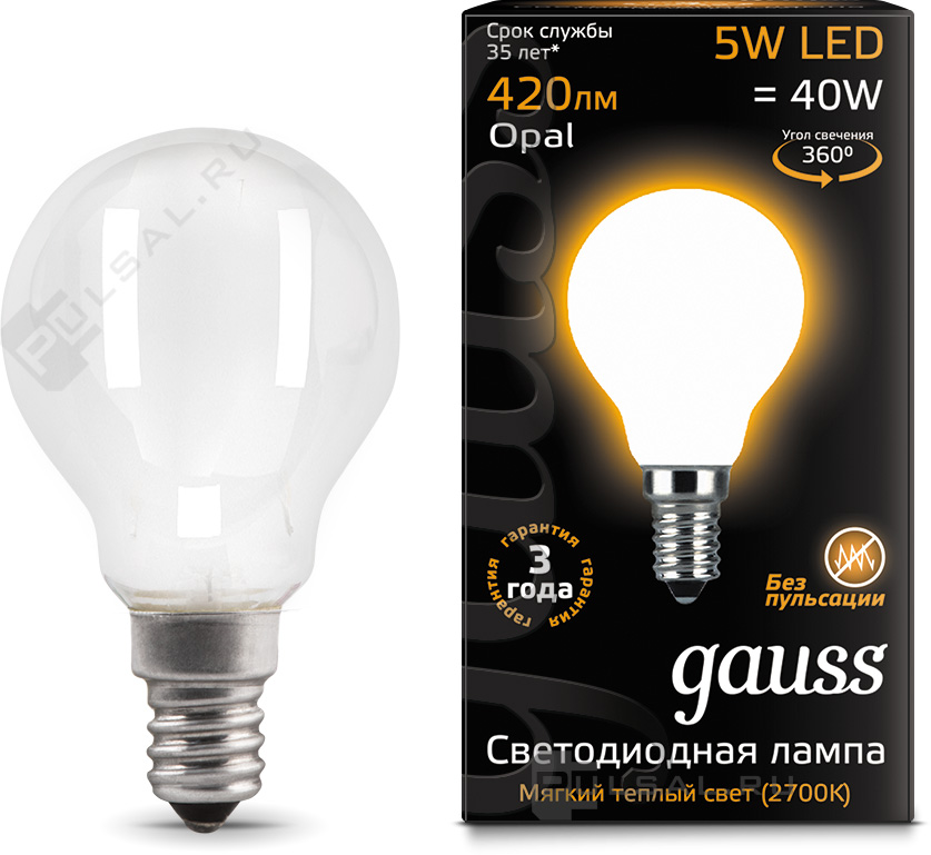 Black, цоколь - E14, мощность - 5Вт, световой поток - 420Лм, цветовая температура - 2700К, не диммируемая, 103801105P, Gauss