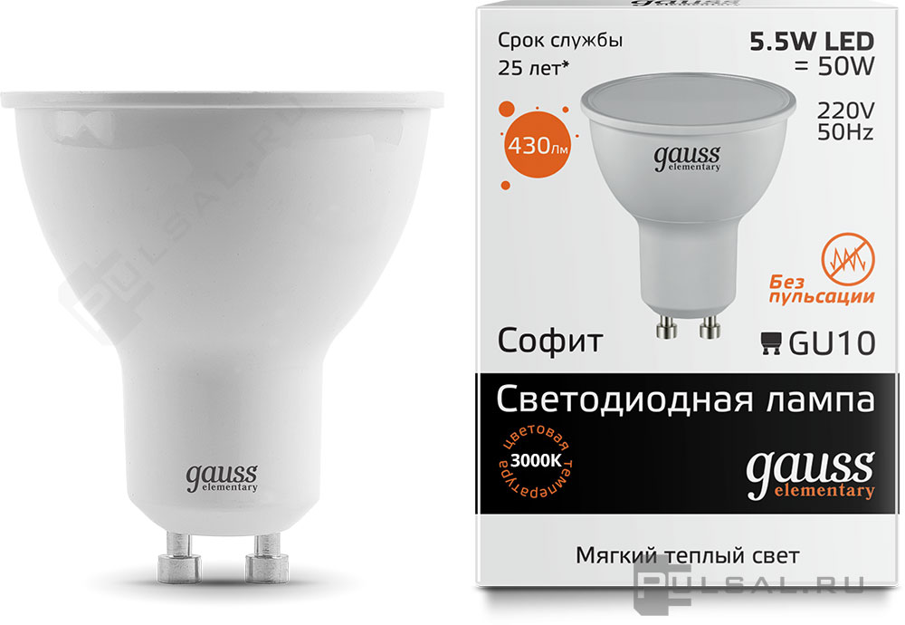 Elementary, цоколь - GU10, мощность - 7Вт, световой поток - 530Лм, цветовая температура - 3000К, не диммируется, 13617, Gauss