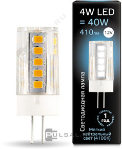 Elementary, цоколь - G4, мощность - 4Вт, световой поток - 400Лм, цветовая температура - 4100К, не диммируется, 10724, Gauss
