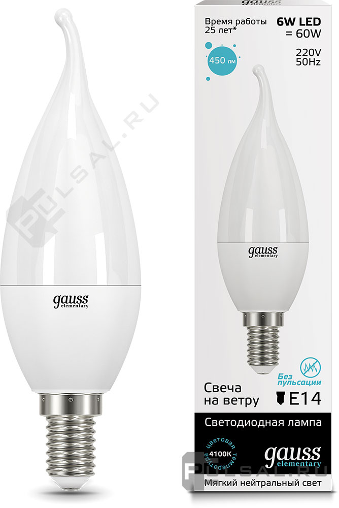 Лампа светодиодная Elementary, цоколь - E14, мощность - 6Вт, световой поток - 450Лм, цветовая температура - 4100К, не диммируется, 34126, Gauss
