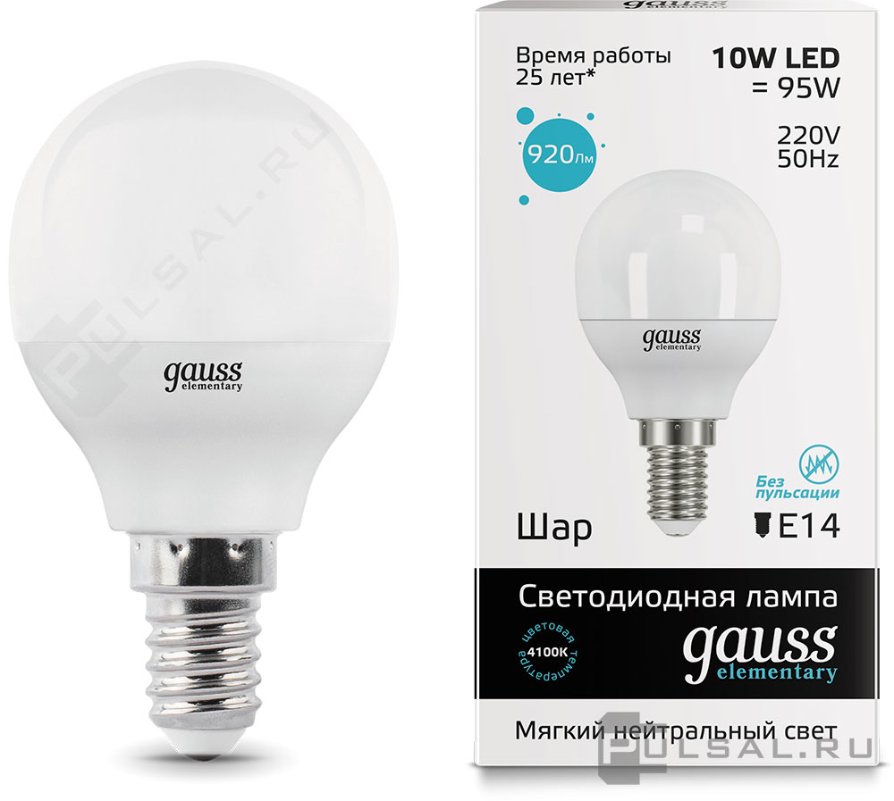 Elementary, цоколь - E14, мощность - 6Вт, световой поток - 450Лм, цветовая температура - 4100К, не диммируется, 34126, Gauss