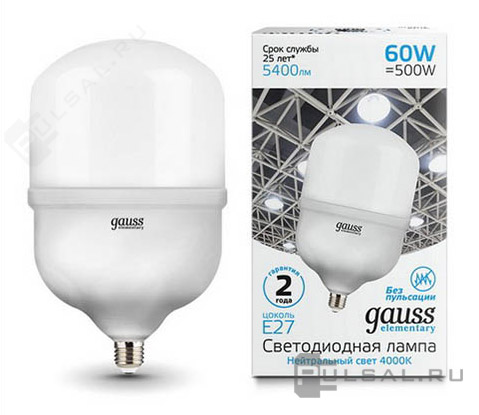 Elementary, цоколь - E27, мощность - 50Вт, световой поток - 4400Лм, цветовая температура - 4000К, не диммируется, 63225, Gauss