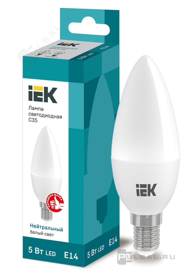 Лампа светодиодная Лампы IEK, цоколь - E14, мощность - 5Вт, световой поток - 450Лм, цветовая температура - 4000К, не диммируется, LLE-C35-5-230-40-E14, IEK