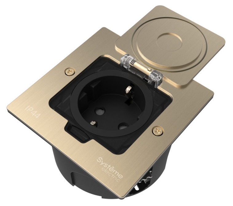 MultiDesk Лючок с розеткой 2К+З, 16А/250В, IP44 с монтажной коробкой для стены, фальшпола, стола