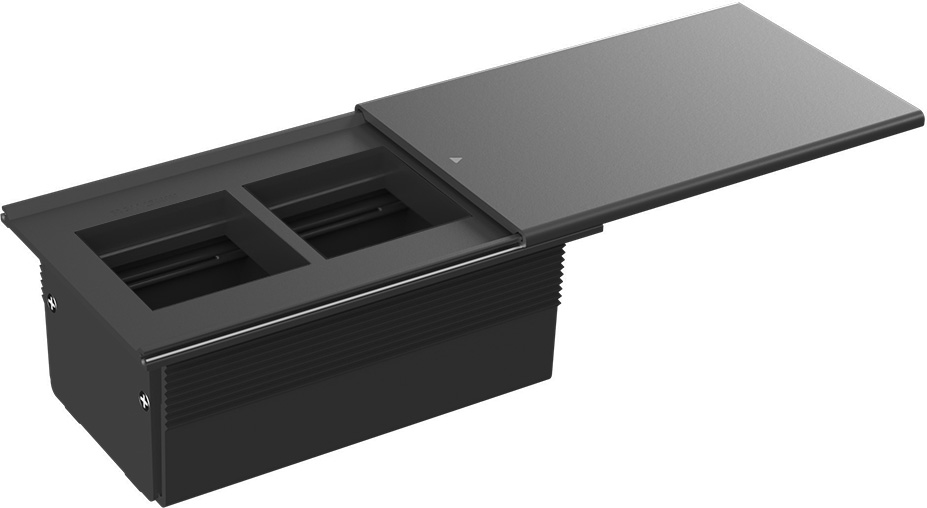 Встраиваемый розеточный блок со сдвижной крышкой (крышка сдвигается вдоль) Лючки DDSB, для столов и мебели, 2 поста, 4 модуля, цвет - черный