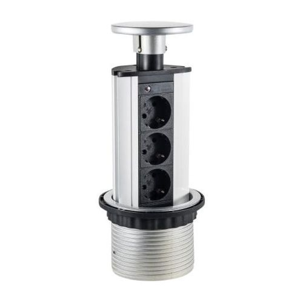 Телеблок на 3 механизма для столов и мебели, 3 поста, 6 модулей, цвет - алюминий