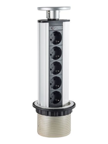 Телеблок на 5 механизмов для столов и мебели, 5 постов, 5+5 модулей, цвет - алюминий