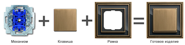 Клавиша/Рамка пластмасса: термопласт (поликарбо- нат), ударопрочный и стойкий к излому, стойкий к УФ-излучению, устойчивый против атмосферных воздействий, без содержания ПВХ и галогенов.