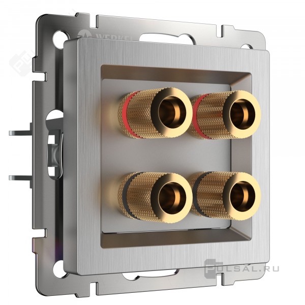 Розетка акустическая Alumax, Split, Slab, Senso, Baguette, Acrylic, Platinum, Elite, Snabb, Stream, Flock, Stark, Fiore, Favorit, Diamant, Aluminium, Antik, Metallic, 2 пары, цвет - серебряный рифленый