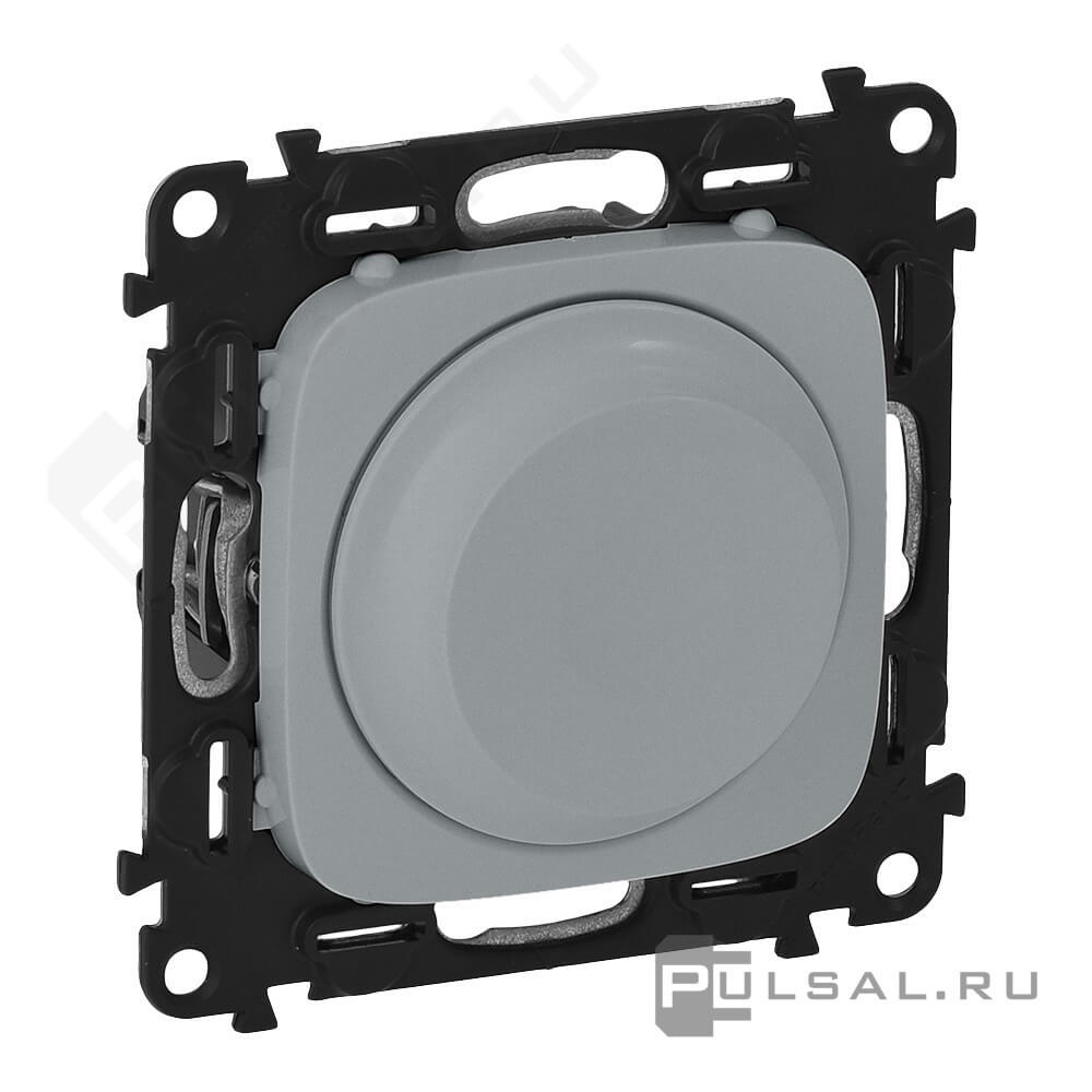 Механизм светорегулятора (диммера) 5-300 Вт/ВА, для LED 5-75 ВА Valena Allure, поворотно-нажимной, лампы накаливания и галогенные 220В (R), лампы с индукционным (обмоточным) трансформ.(L), лампы с электронным (емкостным) трансформ.(C), диммируемые лампы LED 220В (LEDi тип L), диммируемые лампы LED 220В (LEDi тип C), цвет - алюминий