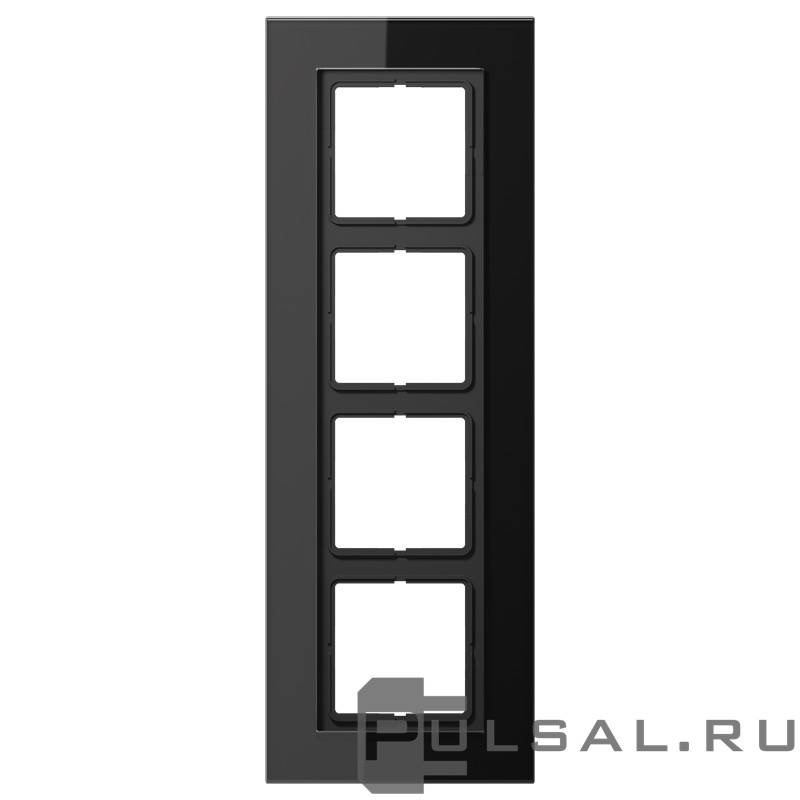 Рамка LS plus, 5 постов, цвет - черный, стекло