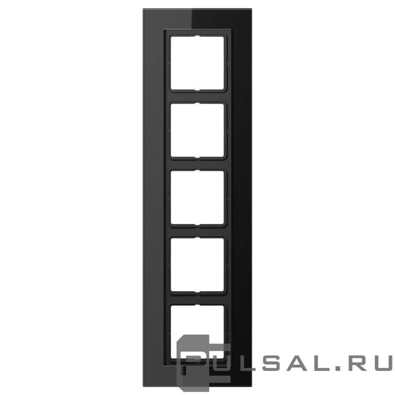 Рамка LS plus, 5 постов, цвет - черный, стекло