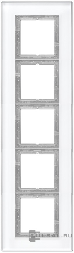 Рамка LS plus, 5 постов, цвет - белый, стекло