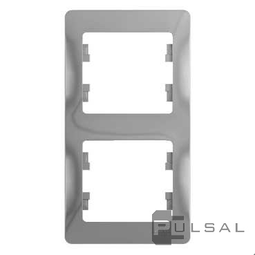 Рамка Glossa, 2 поста, цвет - алюминий, пластмасса