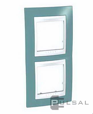 Рамка Unica Хамелеон, 2 поста, цвет - серо-зеленый, белый, пластмасса