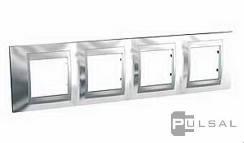 Рамка Unica Top, 4 поста, цвет - хром, графит, металл
