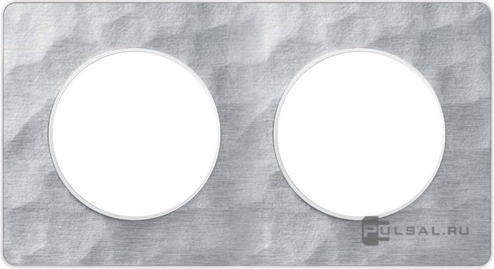 Рамка Odace, 2 поста, цвет - алюминий martele, белый, металл