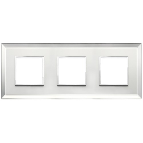 Рамка Eikon EVO, 3 модуля, цвет - серебряный лед, хром, стекло