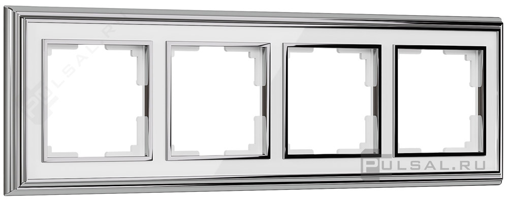 Рамкa Palacio, 4 поста, цвет - белый, хром, белый, металл