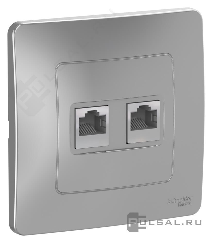 Розетка компьютерная RJ45 + телефонная RJ11 Blanca, двойная, цвет - алюминий