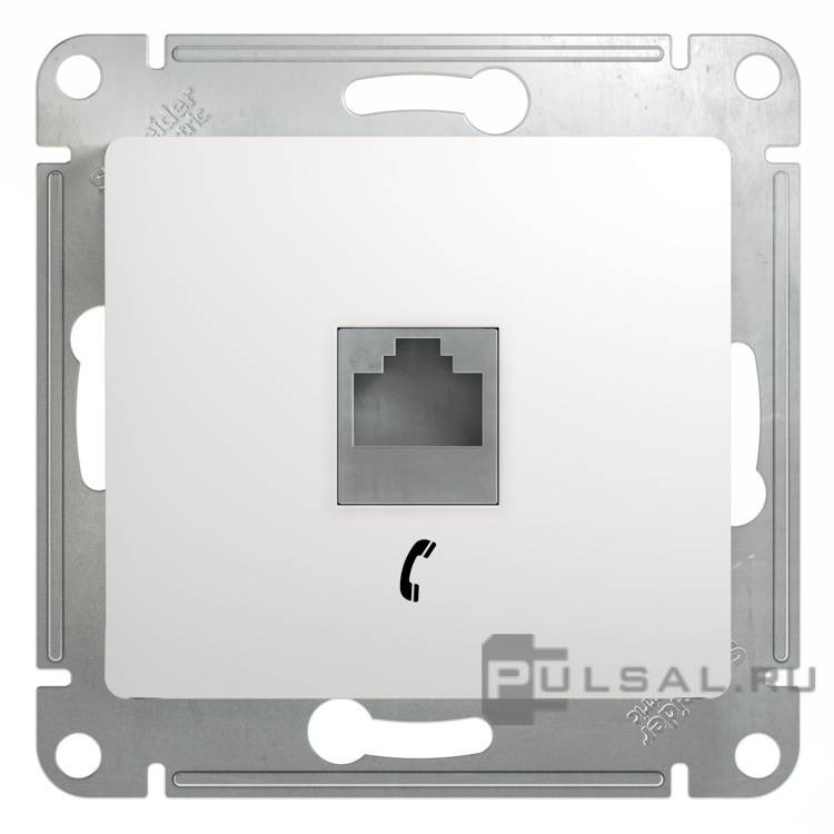 Розетка телефонная RJ11 Glossa, одинарная, цвет - белый