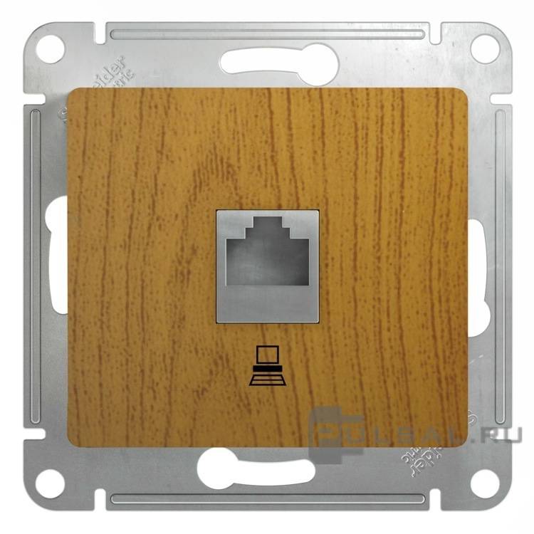 Розетка компьютерная 2 x RJ45 Cat.5e (UTP) Glossa, двойная, цвет - дуб