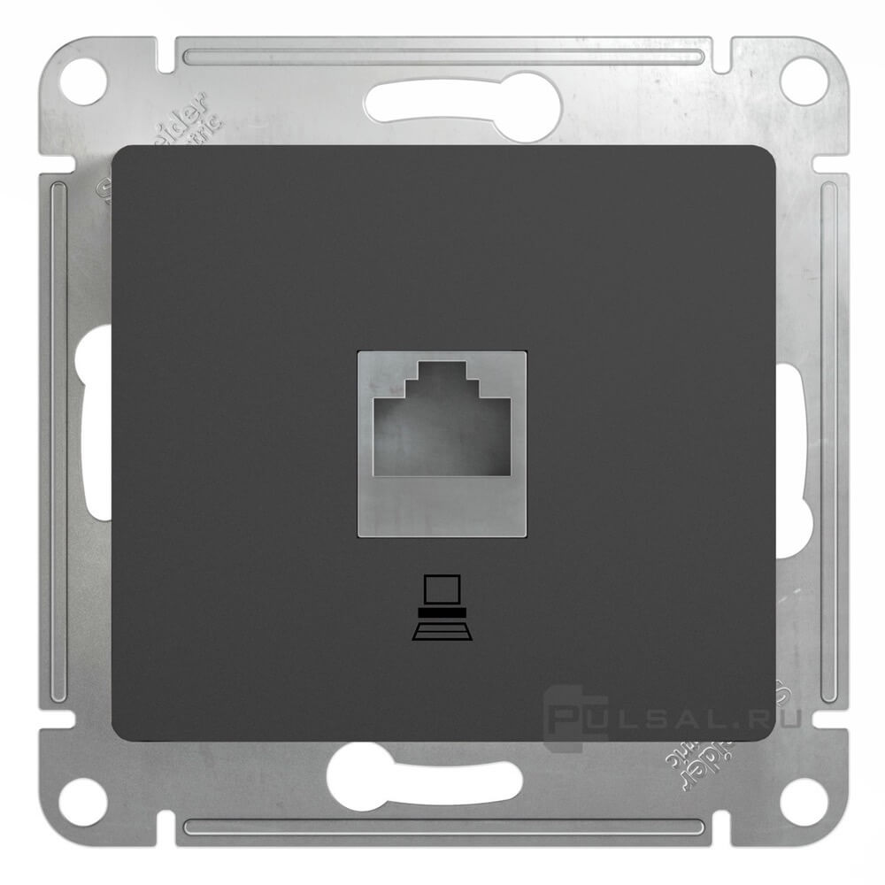 Glossa, без шторок, с заземлением, одинарная, винтовые клеммы, цвет - антрацит