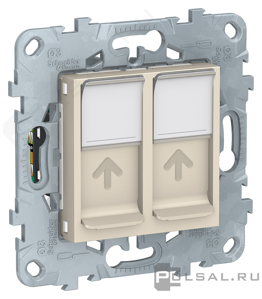 Зарядка USB, 2, 1А Unica New Pure, Unica New Studio, USB type-A 5V, двойная, цвет - бежевый