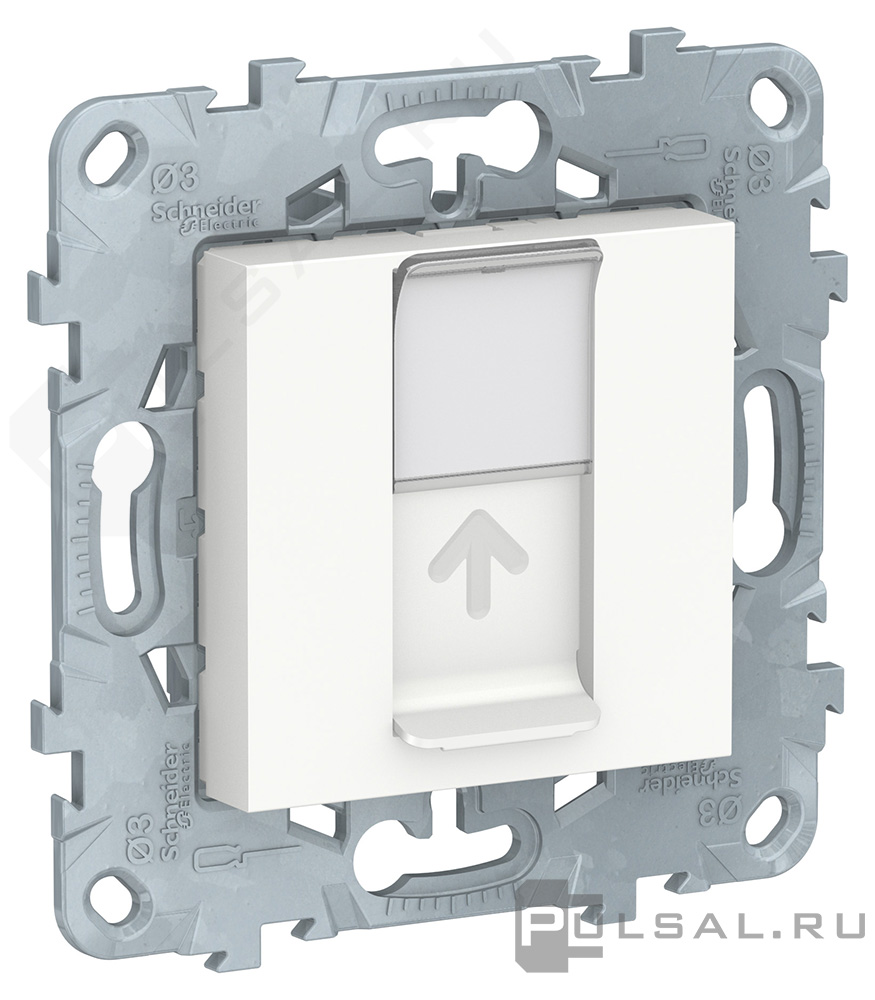 Лицевая панель с суппортом для разъемов Modular Jack (тип Keystone/AMP) Unica New Pure, Unica New Studio, одинарная, цвет - белый
