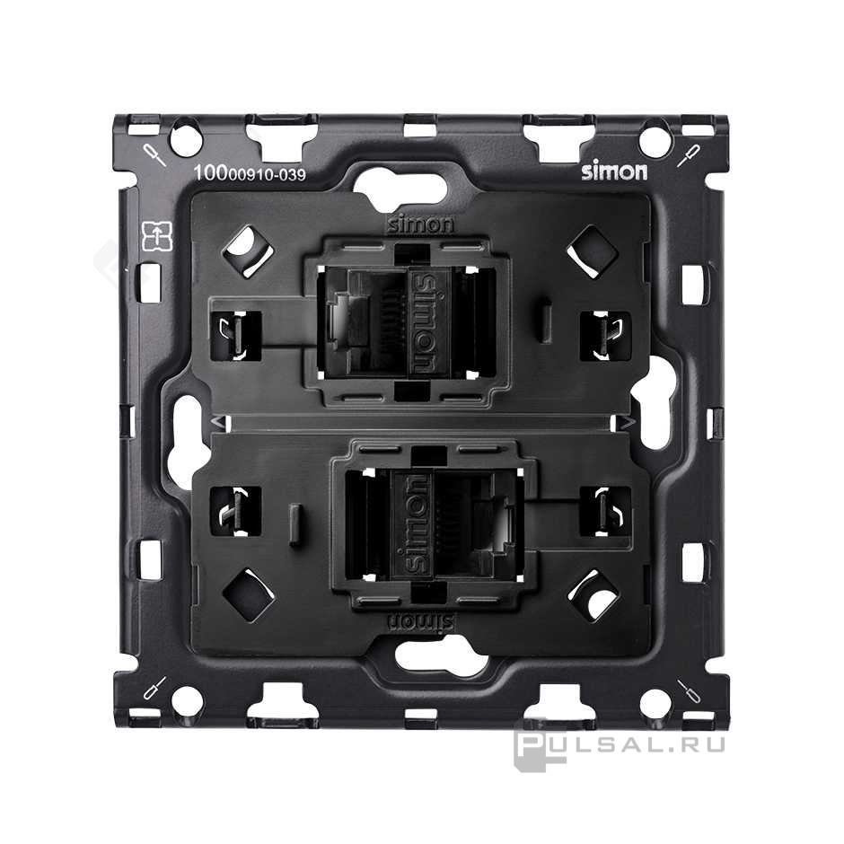 Накладка для механизма розетки RJ45 Simon 100, двойная, цвет - черный матовый