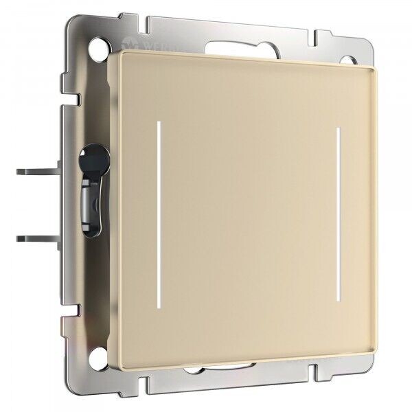 Выключатель Alumax, Split, Slab, Senso, Baguette, Acrylic, Platinum, Elite, Snabb, Stream, Flock, Stark, Fiore, Favorit, Diamant, Aluminium, Antik, Metallic, одноклавишный, без подсветки, цвет - шампань