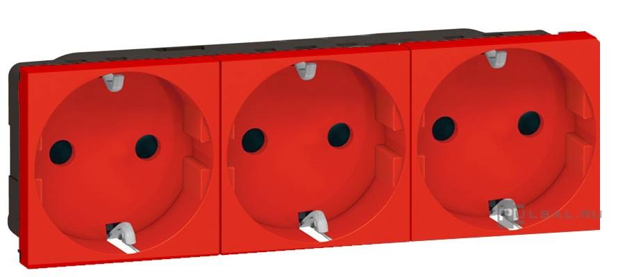 Розетка Mosaic, DLP, DLP floor, DLP IP 44, DLP IP 40, со шторками, с заземлением, одинарная, безвинтовые клеммы, цвет - красный