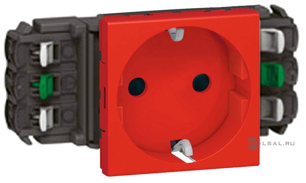 Розетка Mosaic, DLP, DLP floor, DLP IP 44, DLP IP 40, с заземлением, одинарная, безвинтовые клеммы, цвет - красный