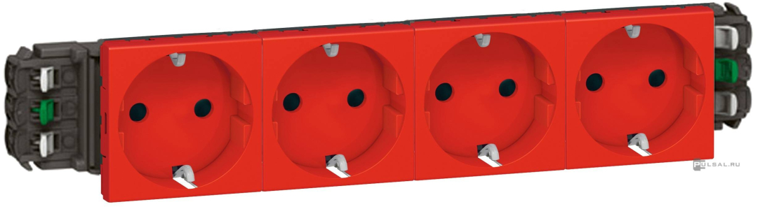 Mosaic, DLP, DLP floor, DLP IP 44, DLP IP 40, без шторок, с заземлением, одинарная, безвинтовые клеммы, цвет - красный