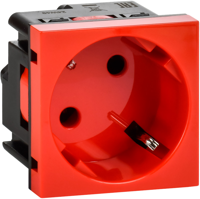 Розетка 45° Mosaic, DLP, DLP floor, DLP IP 44, DLP IP 40, со шторками, с заземлением, одинарная, безвинтовые клеммы, цвет - красный