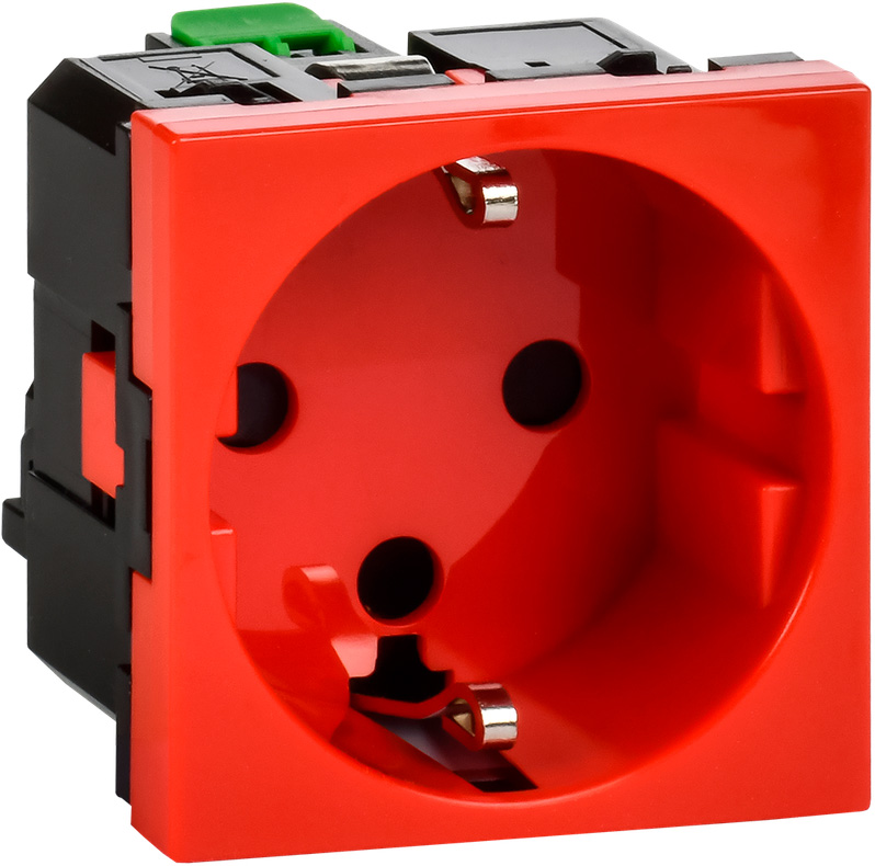 Розетка Mosaic, DLP, DLP floor, DLP IP 44, DLP IP 40, со шторками, с заземлением, одинарная, безвинтовые клеммы, цвет - красный