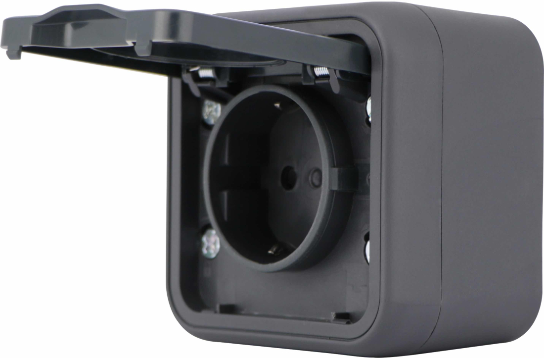 Рамка с крышкой для розетки W55, со шторками, с крышкой, с заземлением, одинарная, винтовые клеммы, цвет - антрацит
