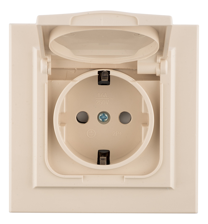 Минск, со шторками, с крышкой, с заземлением, одинарная, безвинтовые клеммы, цвет - бежевый